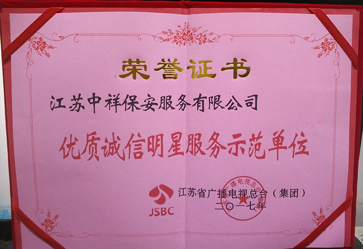 江蘇中祥保安服務有限公司是經江蘇省公安局廳,市公安局批準的具有合法資質的保安服務公司,屬上海智成旗下子公司,我司從2003年以來至今已有十幾年的管理經驗,多年來一直專業從事企業安全外包、大型活動現場保衛、長短期保鏢、緊急危機處理、技術防范等全面安全事務管理服務,保潔服務,物業管理服務,取得了驕人的業績,并受到客戶的高度贊揚。
